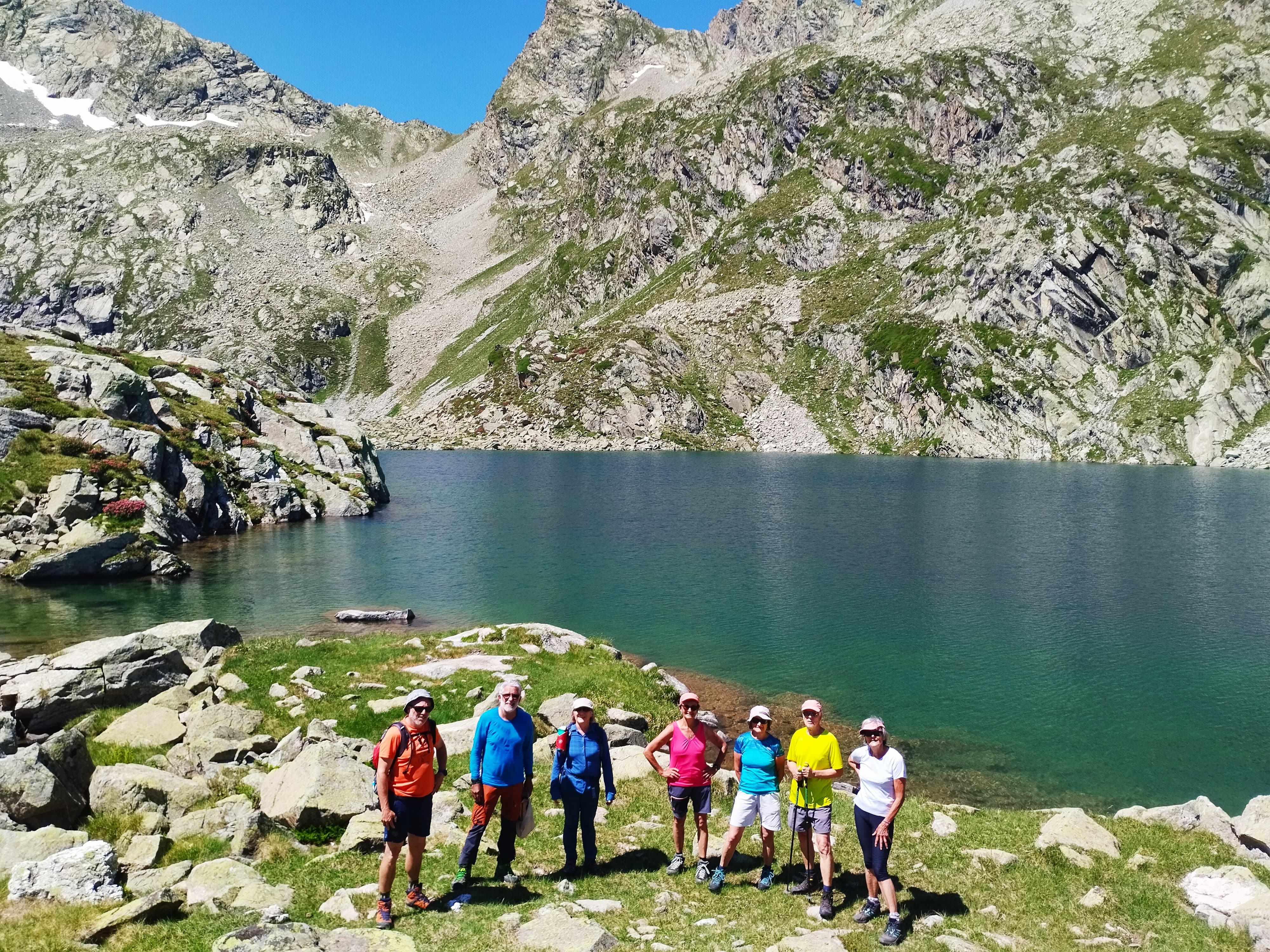 Le second groupe de 14 personnes attaque donc sa journée à 8h30. Au plan d’Aste la température nous semble fraiche mais la montée vers le lac de Suyen nous réchauffe vite. Le ciel est pur et les sommets nous entourant sont sublimes.